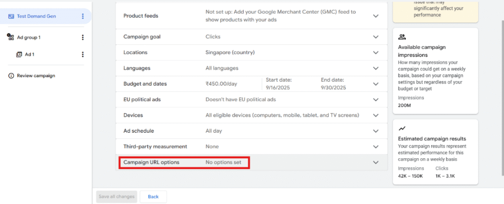 Step 2:Navigate to Campaign URL options