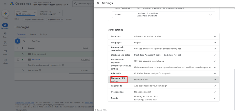Step 2: Navigate to Other Settings -> Campaign URL options